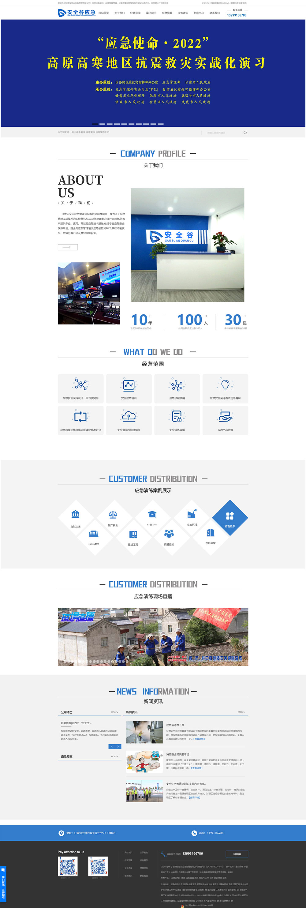 甘肅安全谷應急管理(lǐ)咨詢有限公司是國(guó)内一家專注于應急管理(lǐ)實戰技術(shù)的的經營機(jī)構,以應急處置能力提升爲目标,爲客戶提供專業、适用、高效的應急技術(shù)服務,包括專業應急安全演練策劃、安全與應急管理(lǐ)培訓應急教育片制作(zuò),事(shì)故動畫(huà)模拟、虛拟仿真産品及其它定制服務。