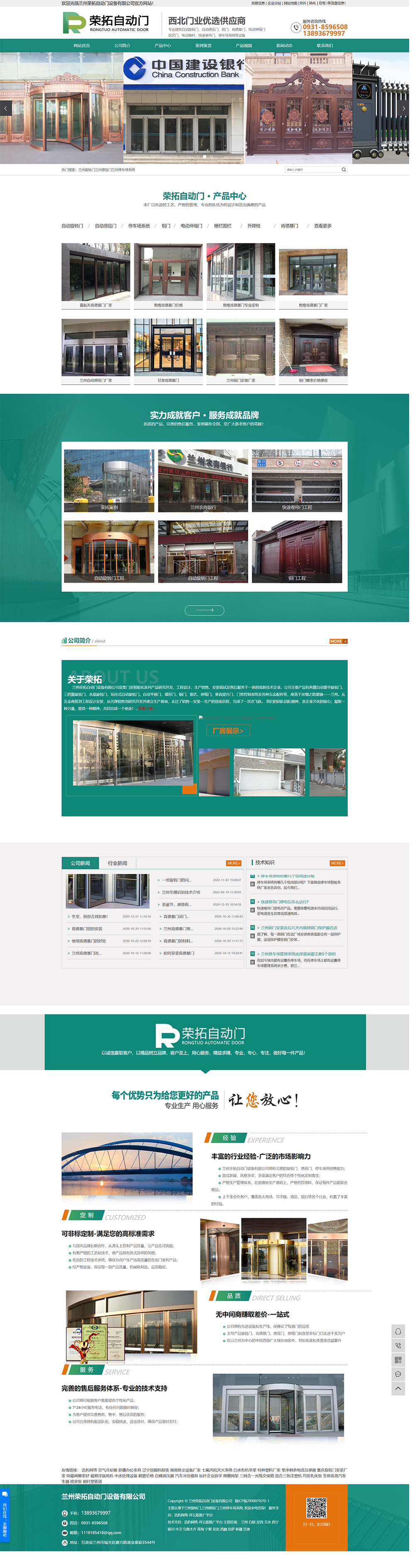 蘭州榮拓自(zì)動門(mén)設備有限公司是集門(mén)類智能化系列産品研究開發、工(gōng)程設計(jì)、生(shēng)産銷售、安裝調試及售後服務于一體(tǐ)的高新技術(shù)企業。公司主要産品有兩翼自(zì)動豪華旋轉門(mén)、三四翼旋轉門(mén)、水晶旋轉門(mén)、環柱式自(zì)動旋轉門(mén)、自(zì)動平移門(mén)、弧形門(mén)、銅門(mén)、銅藝、伸縮門(mén)、垂直提升門(mén)、門(mén)禁控制系統及各種五金配件(jiàn)等,座落于絲綢之路(lù)重鎮——蘭州。