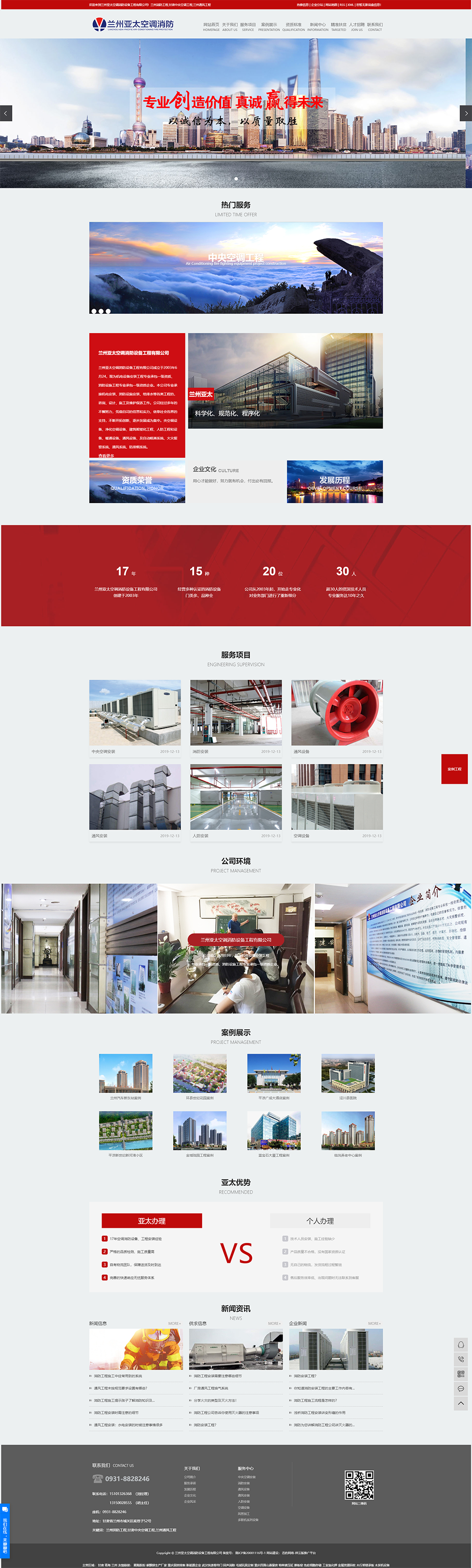 蘭州亞太空調消防設備工(gōng)程有限公司成立于2003年(nián)6月24,現爲機(jī)電設備安裝工(gōng)程專業承包一級資質、消防設施工(gōng)程專業承包一級資質企業。本公司專業承接機(jī)電安裝、消防設施安裝、給排水等各類工(gōng)程的,咨詢、設計(jì)、施工(gōng)及維護保養工(gōng)作(zuò)。