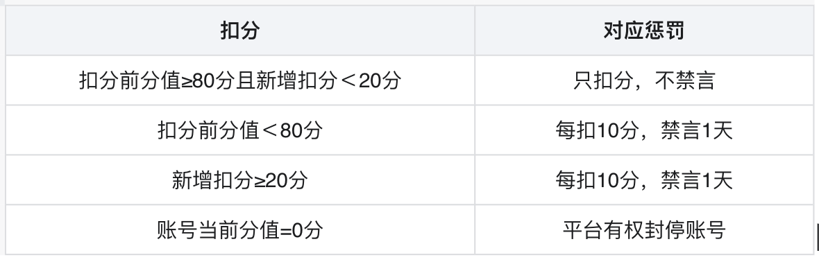 百家号信用分(fēn)受到不同程度的扣分(fēn)時,會被給予不同程度的懲罰措施,建議(yì)創作(zuò)者們要熟悉百家号的懲罰規則,不然可(kě)能會因爲不符合規則而出現,被禁言的情況。具體(tǐ)禁言懲罰規則對應關系如(rú)下: